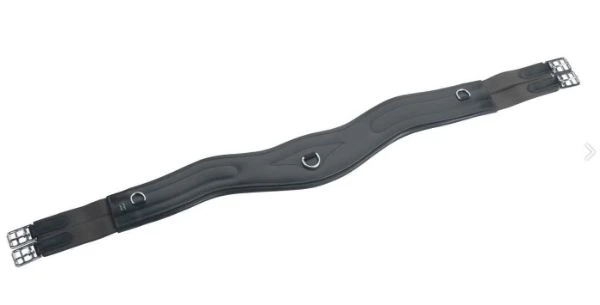 The Ergonomic girth is anatomically shaped allowing optimum elbow room for the horse. The calf skin leather and soft padding creates a comfortable fit for the horse whilst the elastic straps either side allow an even fit. Includes a D-ring attachment for training aid purposes.