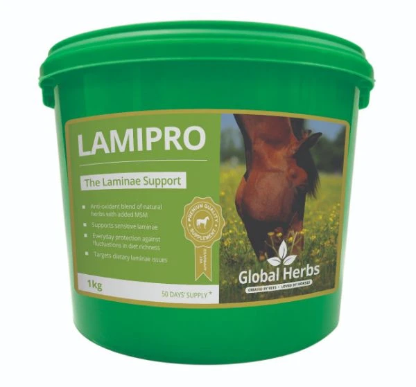 LamiPro is an advanced formula which supports the feeding management of horses. LamiPro helps soothe and support horses at anytime or when there is a flush of spring grass. This premium herbal supplement aids digestion and feed utilisation while helping to comfort feet. Can be used long term or short term depending on individual requirements. Suitable for all horses and ponies.