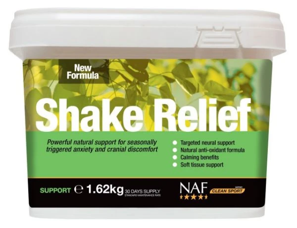 Shake Relief provides unique nutritional support for horses who show signs of seasonal anxiety. Horses may be affected by a number of different seasonal triggers; commonly bright sunlight, pollen or a windy day, resulting in seasonally associated anxiety and discomfort in the head. By improving the diet with targeted nutrition, the horse’s natural defences are optimised. New Shake Relief provides a unique combination of naturally sourced phytochemicals working as natural antioxidants, calming support and for immune function; alongside MSM for soft tissue comfort, Vitamin E and Vitamin B12 for targeted neural support, with magnesium to maintain calm through the season. Shake Relief should be fed throughout the peak season for each individual, and may be increased as and when needed Field trials show that 77% of trialists are happy to recommend New Shake Relief for seasonally affected horses.*