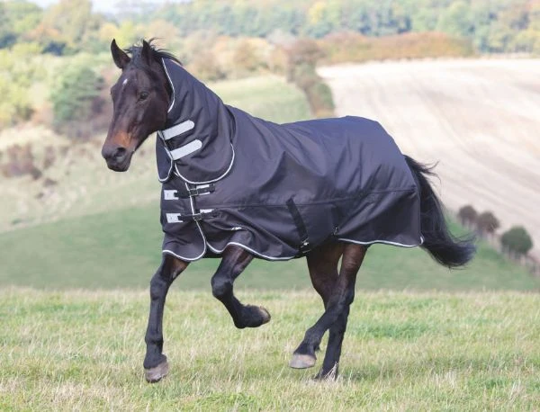 The warmest of the Tempest Plus turnout rugs, offering 300g heavyweight protection for cold temperatures. This combo rug features an integrated contour neck cover which fastens with double sided touch close straps.