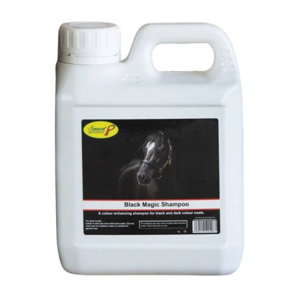 A colour enhancing shampoo for black and dark colour coats. Smart Grooming Black Magic Horse Shampoo is a colour enhancing shampoo that will improve and give added shine to all hair and coat types, but is particularly suited to black and dark colours. This luxurious, concentrated shampoo will wash as well as condition, and will give extra shine. This product is suitable for sensitive skin. Can be used neat or diluted directly onto the coat.