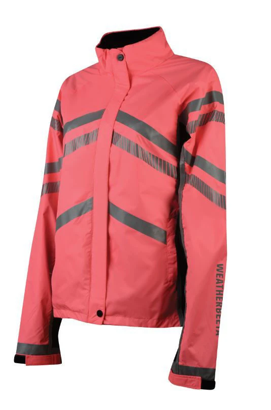 The WeatherBeeta Reflective Lightweight Waterproof Jacket is a waterproof and breathable all weather, lightweight multi functional jacket, fully lined with polyester mesh fabric. Featuring a centre front 2 way zip, reflective branded puller, storm flap, hand zip pockets and inner collar with fleece lining for additional warmth and comfort. The extended back hem with snaps is ideal for riding with a elastic drawstring cord at hem for flexi fit. The raglan cut sleeves offer velcro tab closures at cuffs for a snug fit with stylish reflective tape design on front, back & sleeves providing easy visibility. Comes in 2 hi vis colours of yellow & pink. EN1150 Certified. Cold machine wash with dark colours, hang to dry.