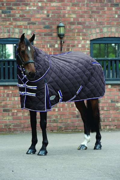The WeatherBeeta ComFiTec 1000D Diamond Quilt Detach-A-Neck Heavy is a stylish and durable stable rug with a 1000 denier polypropylene diamond quilt outer with 350g of polyfill. 210T polyester lining. Quick clip front closure with touch tape for maximum adjustability. Cozi-collar for maximum comfort with memory foam wither relief pad which contours to the horseâ•”s shape and lifts the rug off the withers. Traditional side gussets for natural movement. Low cross surcingles and tail cord.