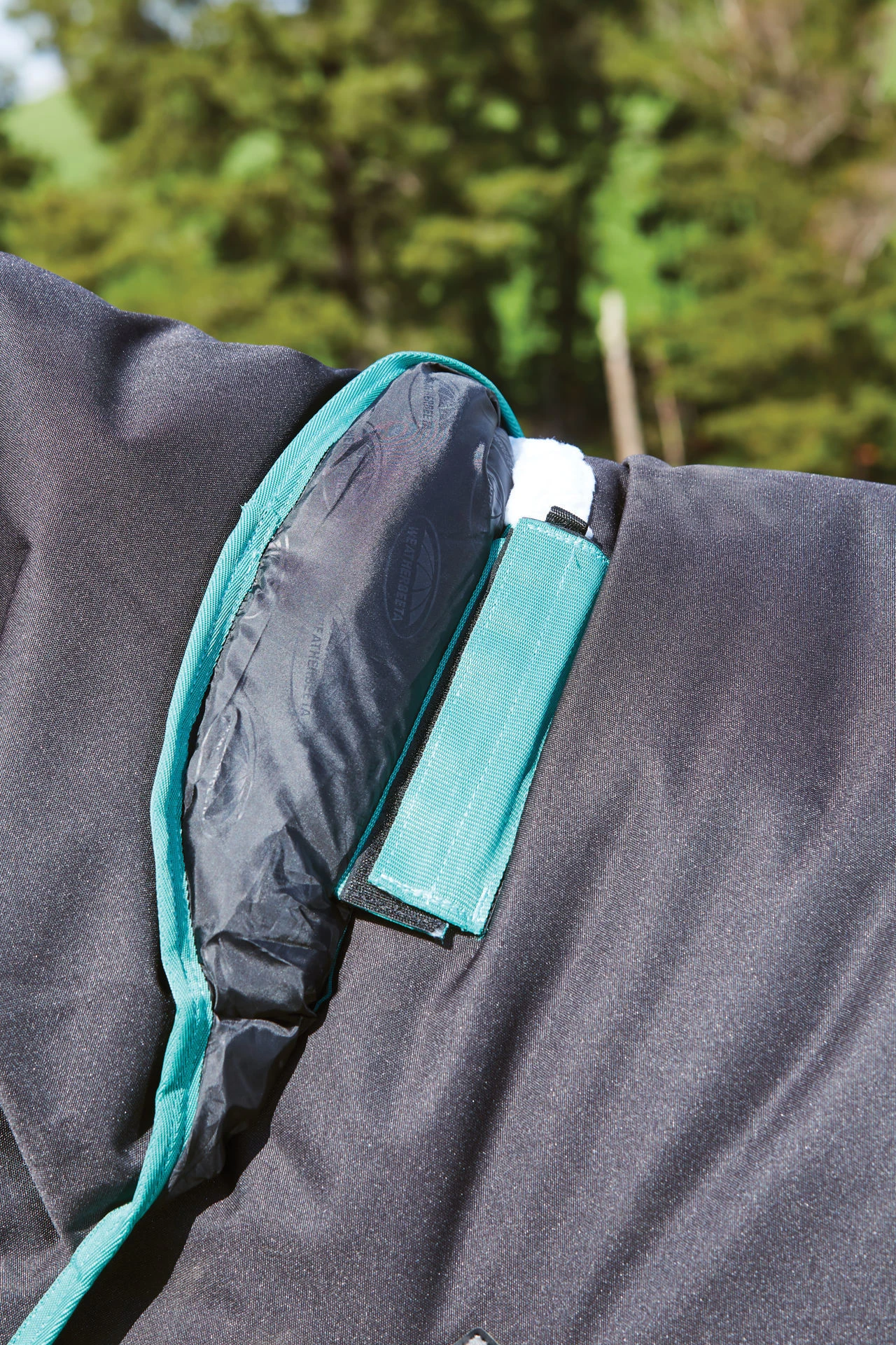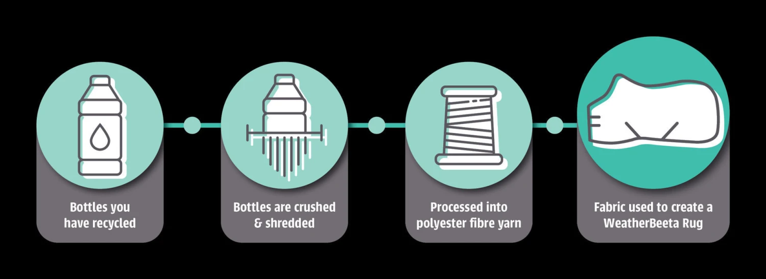 The Weatherbeeta Green-Tec Mediumweight 220g Detachable Neck Turnout Rug has been created using recycled plastics for the outer and lining, meaning each rug saves over 340 plastic bottles from going into the ocean or landfill and the way we have made it uses far less (over 50% less) energy. It is also packaged in recyclable packaging that is also made from PCR (post consumer recyclable plastic). This mediumweight turnout rug is waterproof and breathable, made from 900 denier fabric with a strong 150 denier diamond weave lining PCR fabric. This features a detachable neck for versatility and side gussets to allow freedom of movement. The quick clip front closure are adjustable with twin low cross surcingles, large tail flap for protection and removable, adjustable leg straps.