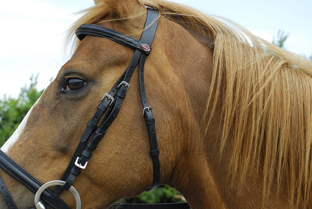 Leather bridle with raised browband and flash noseband. Includes rubber covered reins.